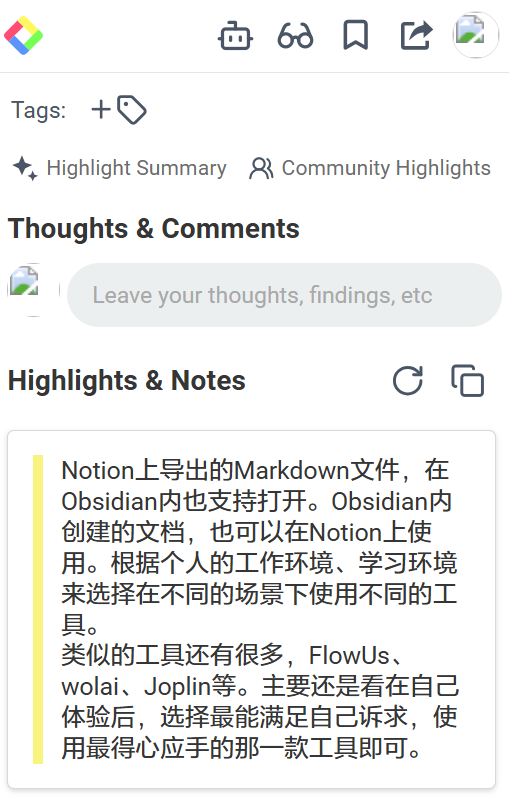 二、 glasp 划线可以识别换行,几行几段都清晰易读