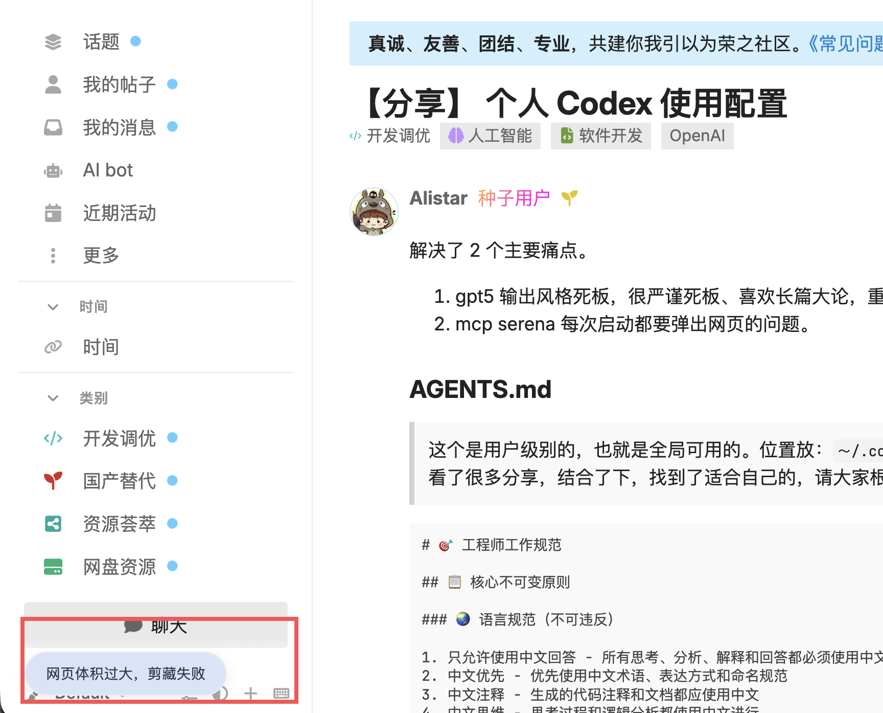 我只想剪藏L站的1个帖子(只想剪藏楼主的内容),但是失败了