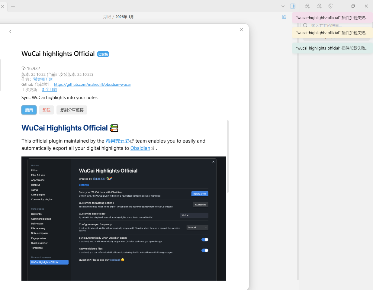 obsidian中的五彩插件打不开