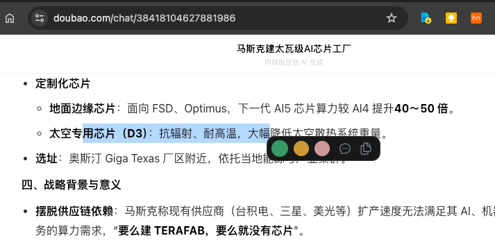 豆包无法使用高光,黑名单也没有豆包网址,只有生成对话时可以划线正在生成的部分