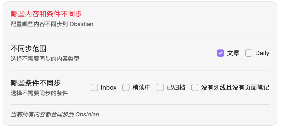 obsidian wucai插件配置-不同步范围-文章 这个选项无法被取消(当前取消之后重新打开依然还在)