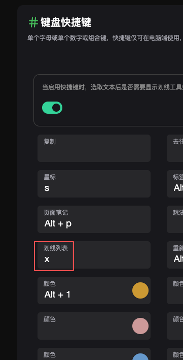 现在提供了一个浮动的划线侧边栏,通过侧边栏能导航到指定的划线,可以给侧边栏的切换配置一个快捷键。