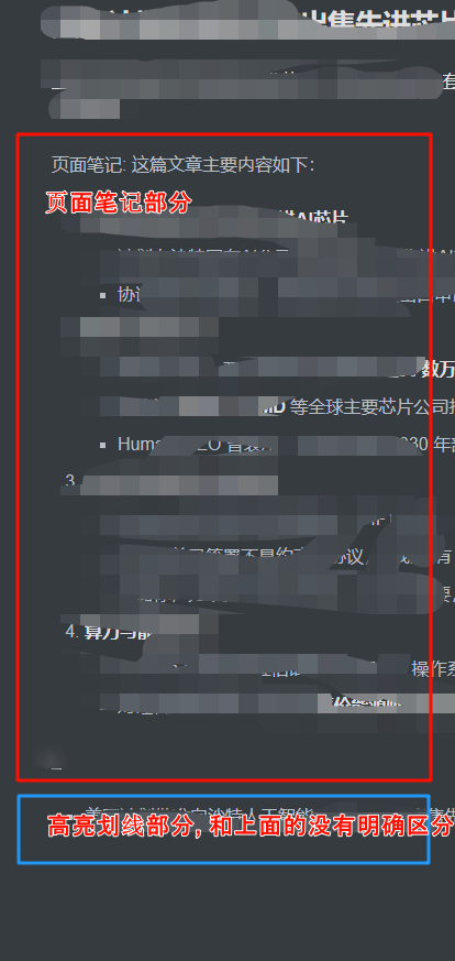 直接复制网页上含有页面笔记和高亮的内容, 无法清晰区分问题