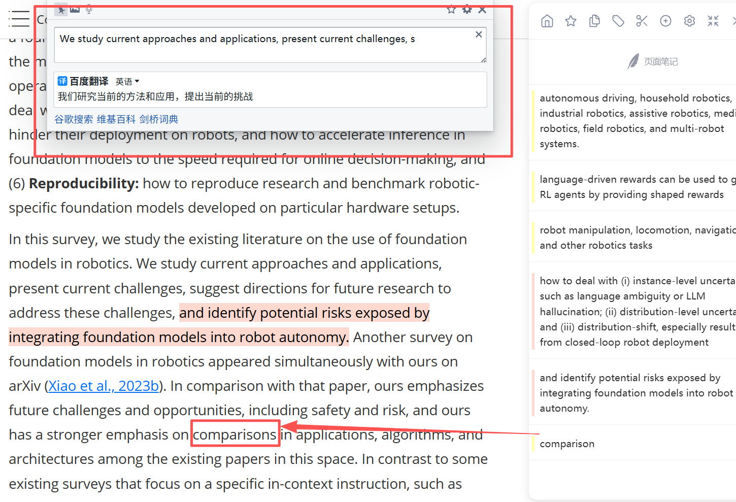 图中我标注了“comparisons”这个单词,在标注列表可以看到有标注,但是在页面上无法正常着色